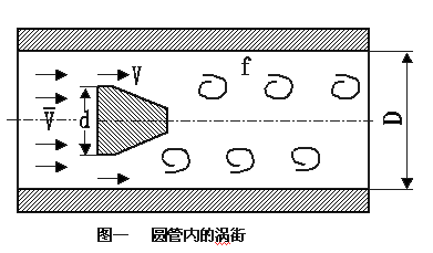 當(dāng)被測介質(zhì)流過柱體時(shí),在柱體兩側(cè)交替產(chǎn)生旋渦,旋渦不斷產(chǎn)生和分離,在柱體下游便形成了交錯(cuò)排列的兩列旋渦即“渦街"。理論分析和實(shí)驗(yàn)已證明,旋渦分離的頻率與柱側(cè)介質(zhì)流速成正比。